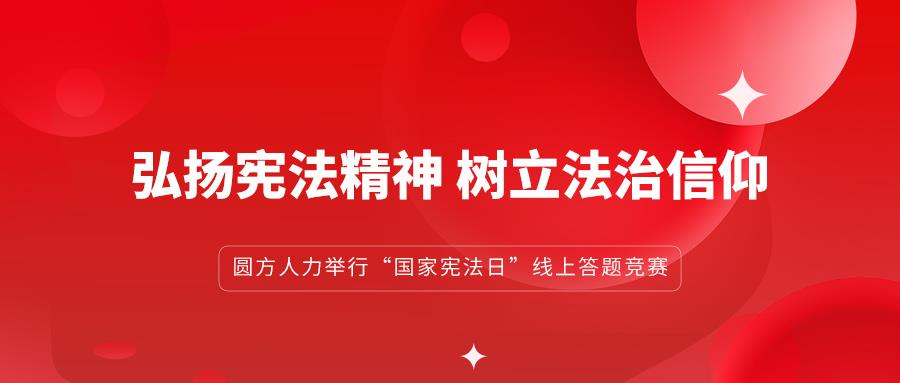 2022年12月4日是我國第九個(gè)“國家憲法日”。為大力弘揚憲法精神,增強員工的法治意識,樹(shù)立員工群體的法治信仰,圓方人力交通事業(yè)部聯(lián)合甲方合作單位舉行“憲法日”主題聯(lián)學(xué)聯(lián)創(chuàng )線(xiàn)上答題競賽活動(dòng)。