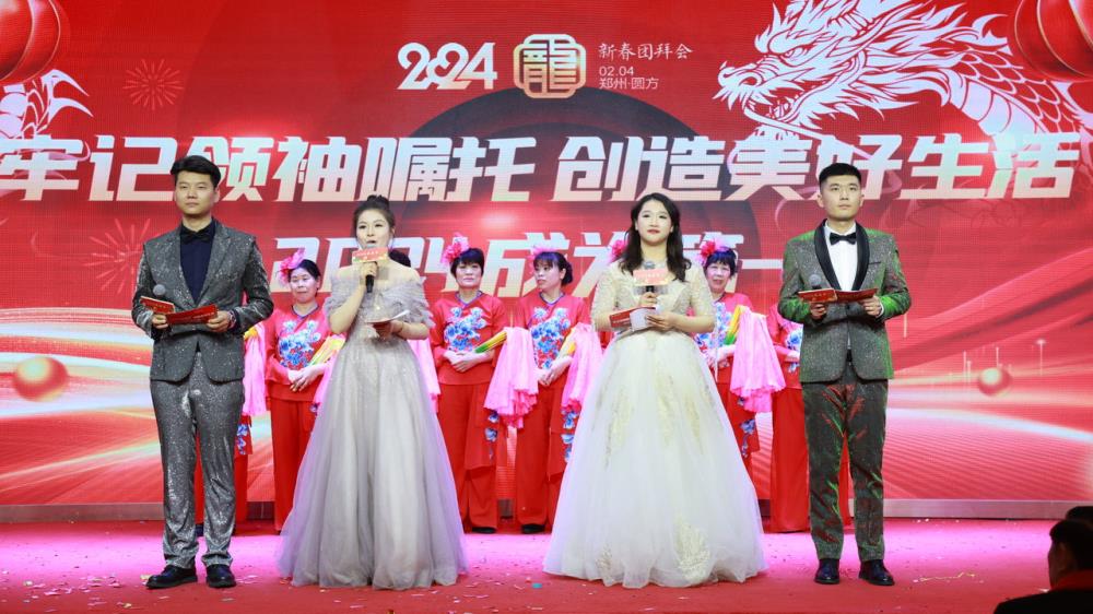 2024年2月4日下午,圓方集團大廈一樓會(huì )議中心流光溢彩,喜氣洋洋,圓方集團2024年新春團拜會(huì )在此隆重舉行。在這個(gè)特殊的時(shí)刻,圓方集團全體員工齊聚一堂,共同慶祝新春佳節,回顧過(guò)去一年的輝煌成就,展望未來(lái)的美好藍圖。中國廣播電視社會(huì )組織聯(lián)合會(huì )全民國防教育宣傳委員會(huì )會(huì )長(cháng)、河南省委宣傳部原二級巡視員鄭志宏,河南省工信廳原一級巡視員、工信廳關(guān)工委常務(wù)副主任郭運敏,河南省政府參事,省社科院原院長(cháng)張占倉,圓方集團黨委書(shū)記、總裁薛榮,圓方集團黨委副書(shū)記、總經(jīng)理李圓方,圓方集團黨委專(zhuān)職副書(shū)記劉新旺等領(lǐng)導嘉賓出席了本次團拜會(huì )。圓方集團各分子公司領(lǐng)導、優(yōu)秀職工代表等500余人參加了本次團拜會(huì )。團拜會(huì )通過(guò)同步網(wǎng)絡(luò )直播的形式,把新春的祝福傳播到千家萬(wàn)戶(hù)。圓方品牌營(yíng)銷(xiāo)戰略公司副總經(jīng)理吉澤森,圓方人力集團營(yíng)銷(xiāo)中心王樂(lè ),圓方人力集團企服數科公司運營(yíng)經(jīng)理王永新,圓方集團總裁辦閆鑫鈳擔任本次團拜會(huì )主持人。