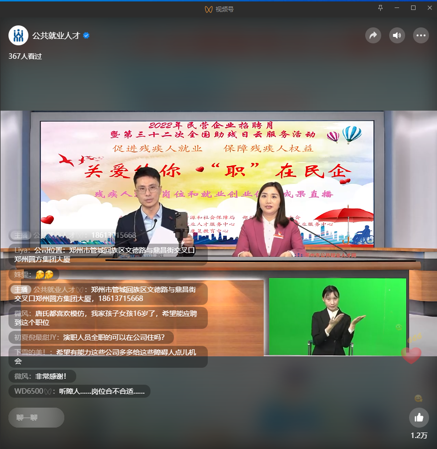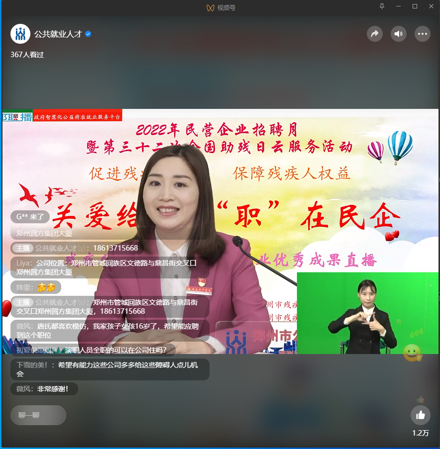 5月15日---第32個(gè)“全國助殘日”來(lái)臨之際,為進(jìn)一步促進(jìn)殘疾人就業(yè),保障殘疾人權益,由鄭州市人力資源和社會(huì )保障局、鄭州市殘疾人聯(lián)合會(huì )主辦,鄭州市公共就業(yè)人才服務(wù)中心、鄭州市殘疾人勞動(dòng)就業(yè)服務(wù)中心、鄭州市殘疾人康復教育中心等單位協(xié)辦的“2022年民營(yíng)企業(yè)招聘月暨第三十二次全國助殘日云服務(wù)活動(dòng)”正式召開(kāi)。
