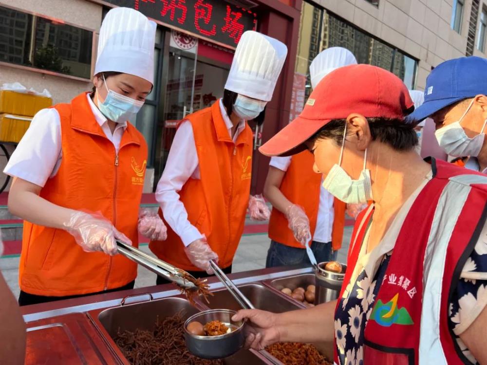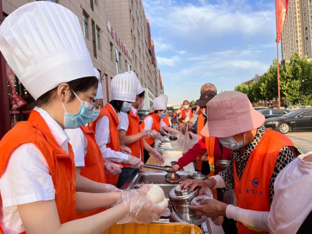 伴隨著(zhù)清晨的第一縷陽(yáng)光,為了確保辛勞的環(huán)衛工人能喝上一碗熱氣騰騰的粥,圓方人力志愿服務(wù)團開(kāi)始了他們一系列的準備工作:換服裝、戴口罩、戴手套、搬桌子、盛粥和雞蛋。