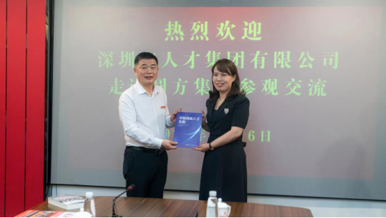 幸輝向祁淑敏簽字贈送由深圳人才集團聯(lián)合清華大學(xué)技術(shù)創(chuàng )新研究中心發(fā)布的《中國創(chuàng )新人才指數2021》報告,并合影留念。