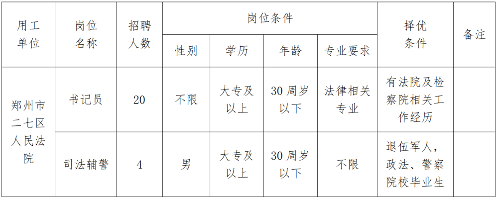 根據工作需要,鄭州市二七區人民法院共需要使用輔助人員24名。現由我公司面向社會(huì )公開(kāi)招聘,公告如下: